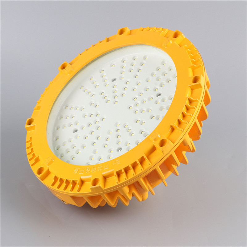 100w水泥厂大功率LED防爆照明灯外壳采用铝合金高压铸造成型,表面经抛丸后高压静电喷塑,有效提高了壳体的散热性能;铝基板紧贴铝合金壳体,可将点热